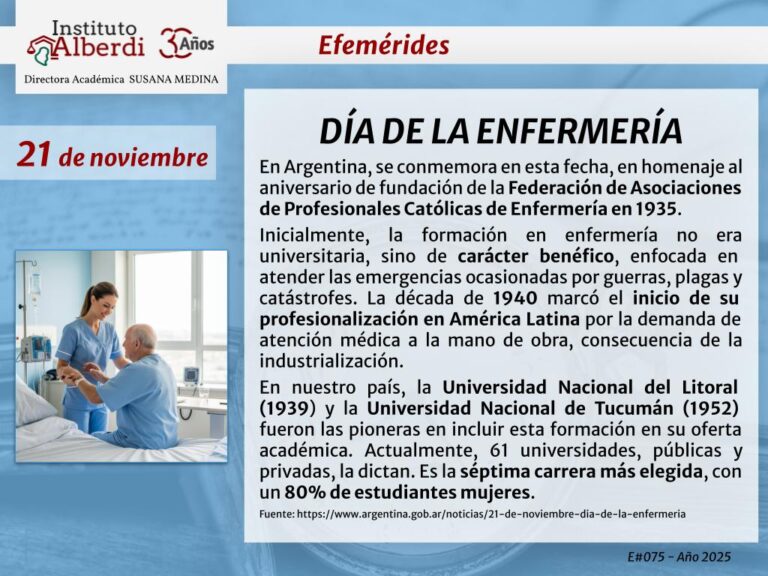 EFEMÉRIDE 21/11: DÍA DE LA ENFERMERÍA