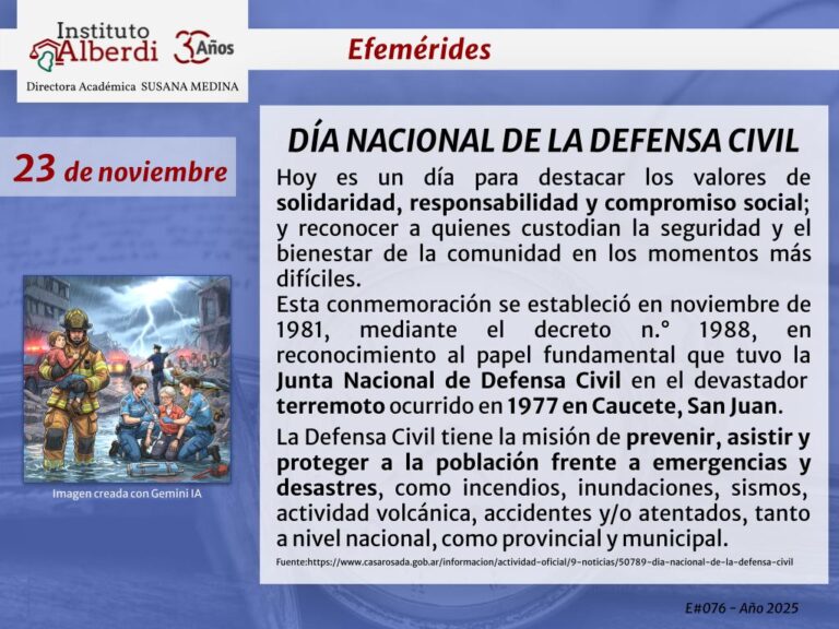 EFEMÉRIDE 23/11: DÍA NACIONAL DE LA DEFENSA CIVIL