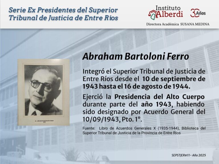 SERIE EX PRESIDENTES DEL SUPERIOR TRIBUNAL DE JUSTICIA DE ENTRE RÍOS: Abraham Bartoloni Ferro