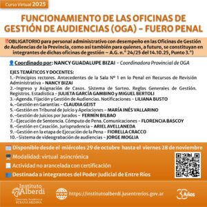 Curso Virtual FUNCIONAMIENTO DE LAS OFICINAS DE GESTIÓN DE AUDIENCIAS (OGA) – FUERO PENAL