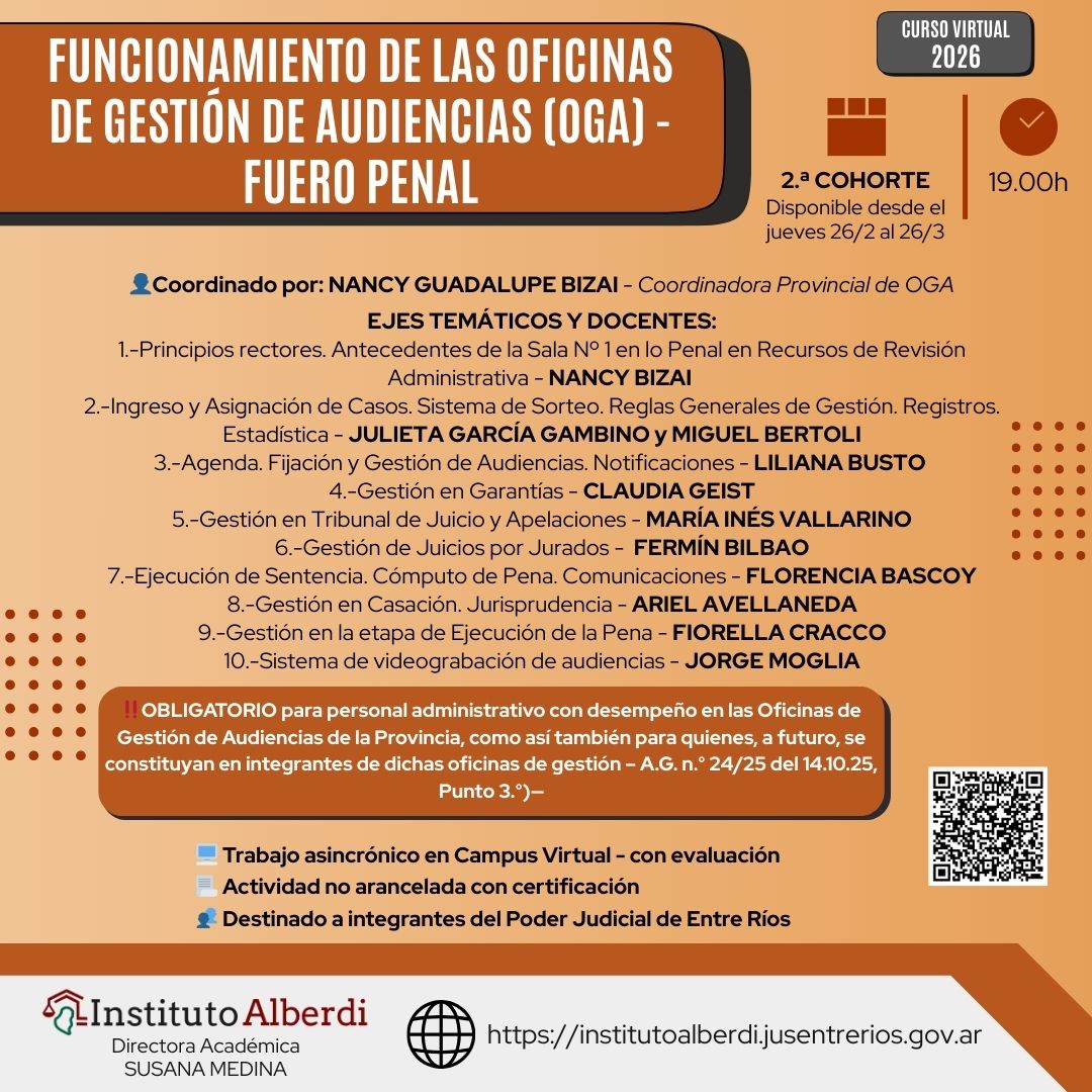Curso Virtual FUNCIONAMIENTO DE LAS OFICINAS DE GESTIÓN DE AUDIENCIAS (OGA) – FUERO PENAL