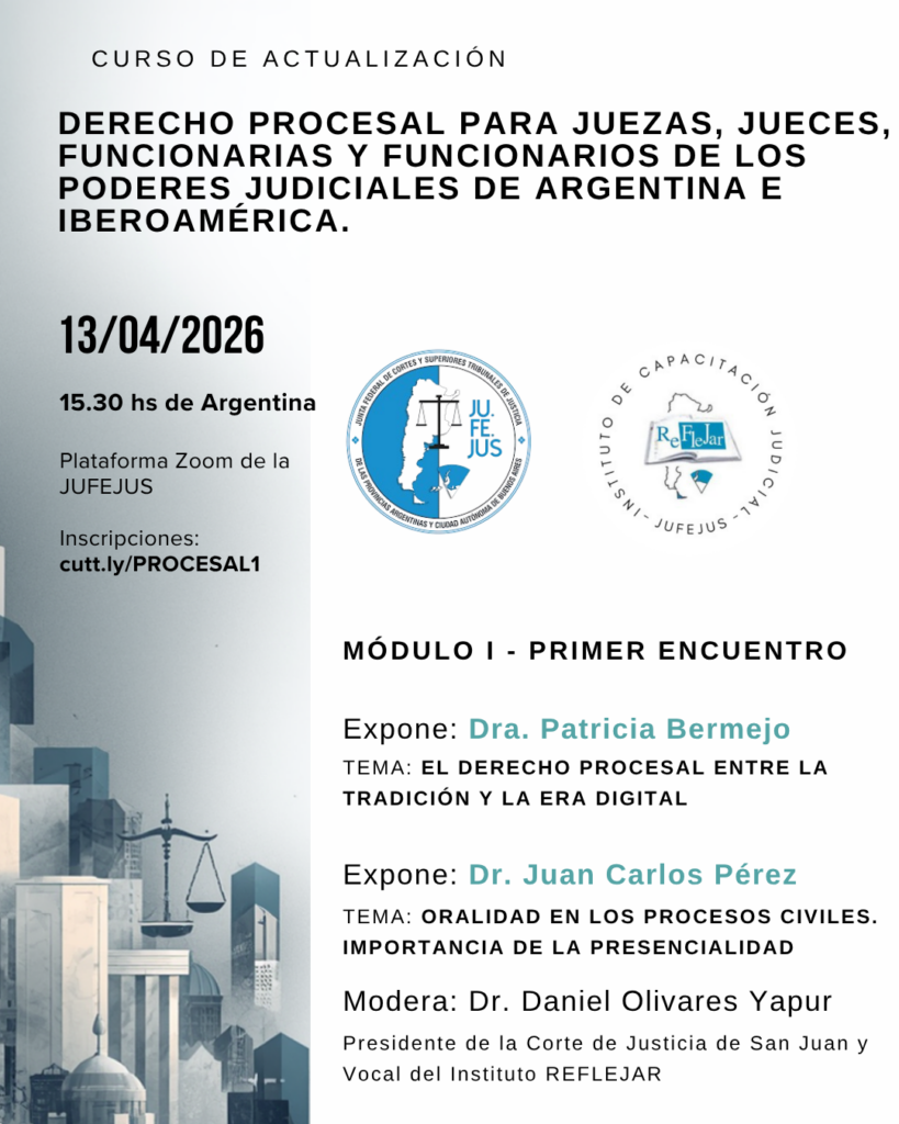 “CURSO DE ACTUALIZACIÓN EN DERECHO PROCESAL PARA JUEZAS, JUECES, FUNCIONARIAS Y FUNCIONARIOS DE LOS PODERES JUDICIALES DE ARGENTINA E IBEROAMÉRICA”