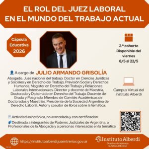 2.ª cohorte- Cápsula Educativa EL ROL DEL JUEZ LABORAL EN EL MUNDO DEL TRABAJO ACTUAL 👤 A cargo de JULIO ARMANDO GRISOLÍA Abogado. Juez nacional del trabajo. Doctor ... 08 May 19:00 Campus Virtual del IA