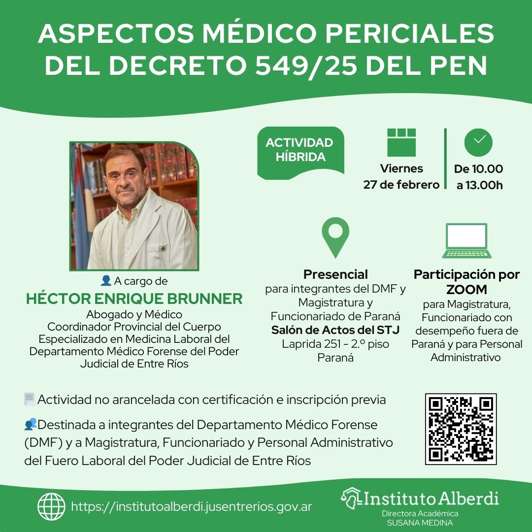 👥 Destinada a integrantes del Departamento Médico Forense (DMF) y a Magistratura, Funcionariado y Personal Administrativo del Fuero Laboral del Poder Judicial de Entre Ríos