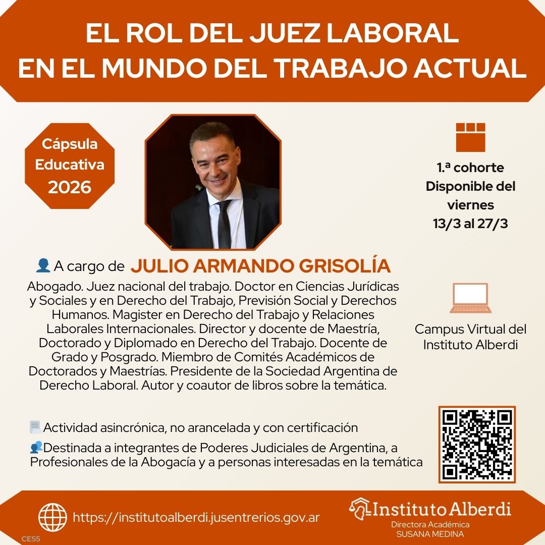 Cada Cápsula Educativa propone un tema específico (en esta ocasión es “EL ROL DEL JUEZ LABORAL EN EL MUNDO DEL TRABAJO ACTUAL”), y consiste en un material audiovisual y un cuestionario de evaluación final. Al tratarse de una actividad asincrónica, cada participante puede realizar la actividad en día y horario de su conveniencia, siempre dentro del plazo de vigencia de la cohorte en la que la esté realizando.