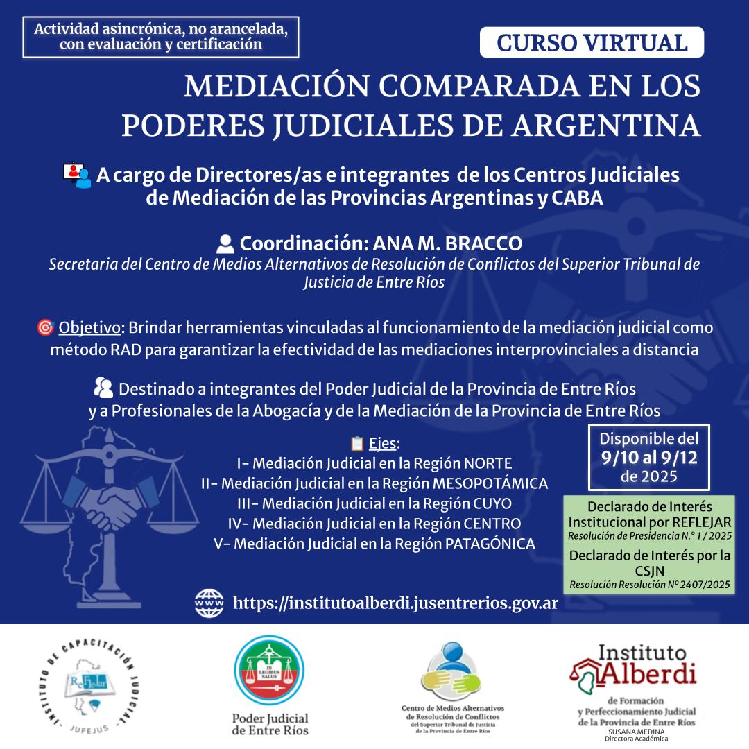 Curso Virtual MEDIACIÓN COMPARADA EN LOS PODERES JUDICIALES DE ARGENTINA