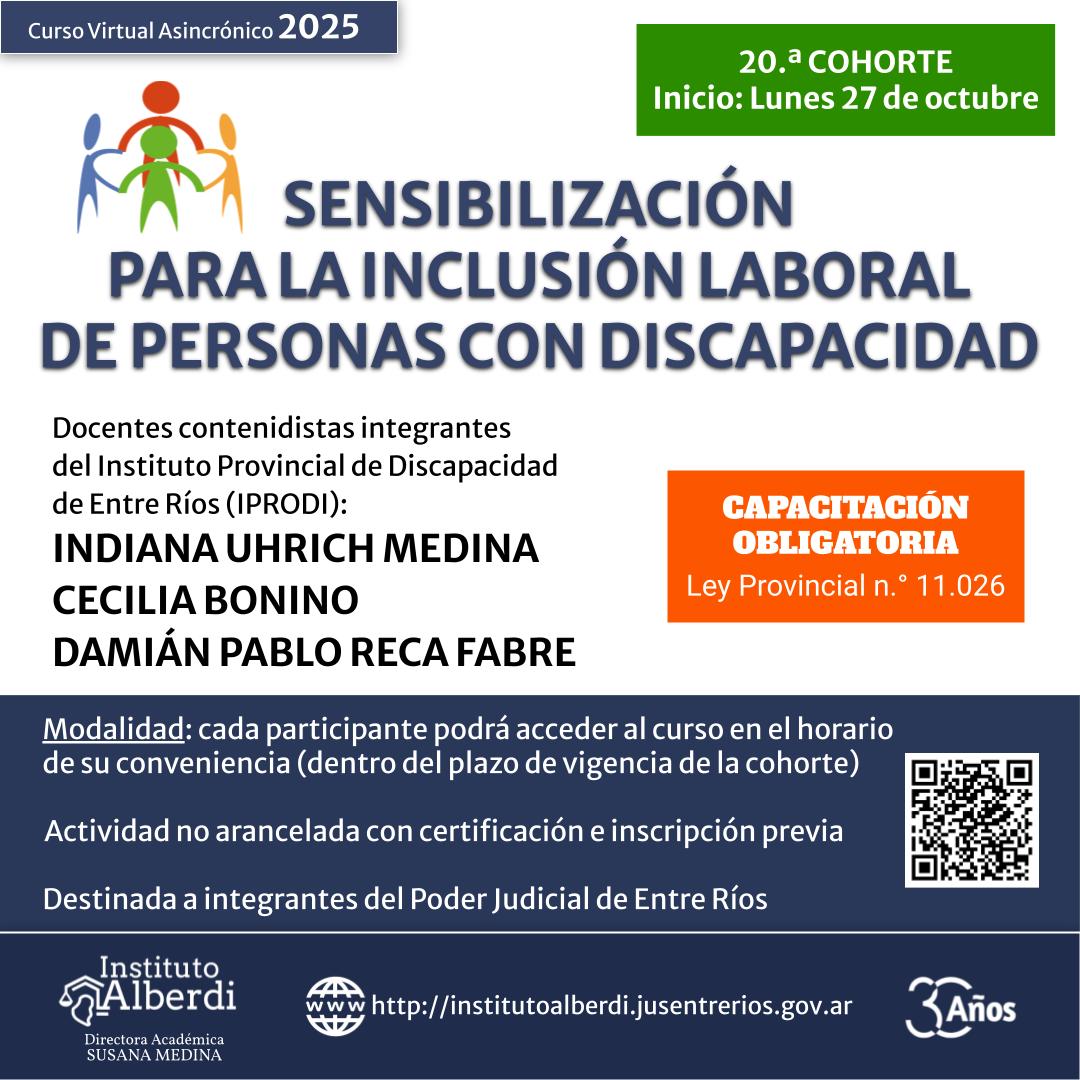Nueva cohorte CURSO VIRTUAL SENSIBILIZACIÓN PARA LA INCLUSIÓN LABORAL DE PERSONAS CON DISCAPACIDAD