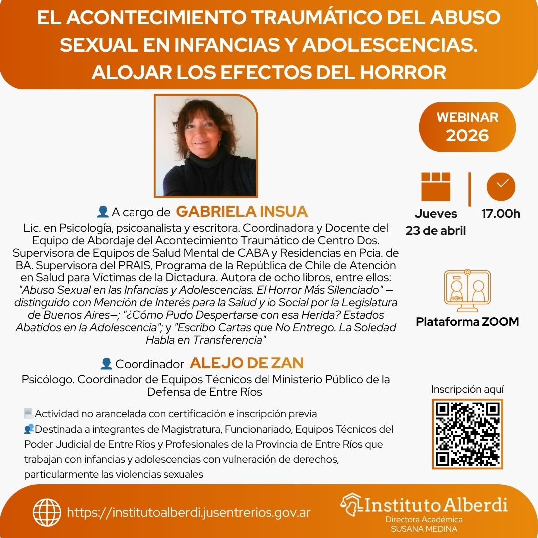 Webinar EL ACONTECIMIENTO TRAUMÁTICO DEL ABUSO SEXUAL EN INFANCIAS Y ADOLESCENCIAS. ALOJAR LOS EFECTOS DEL HORROR